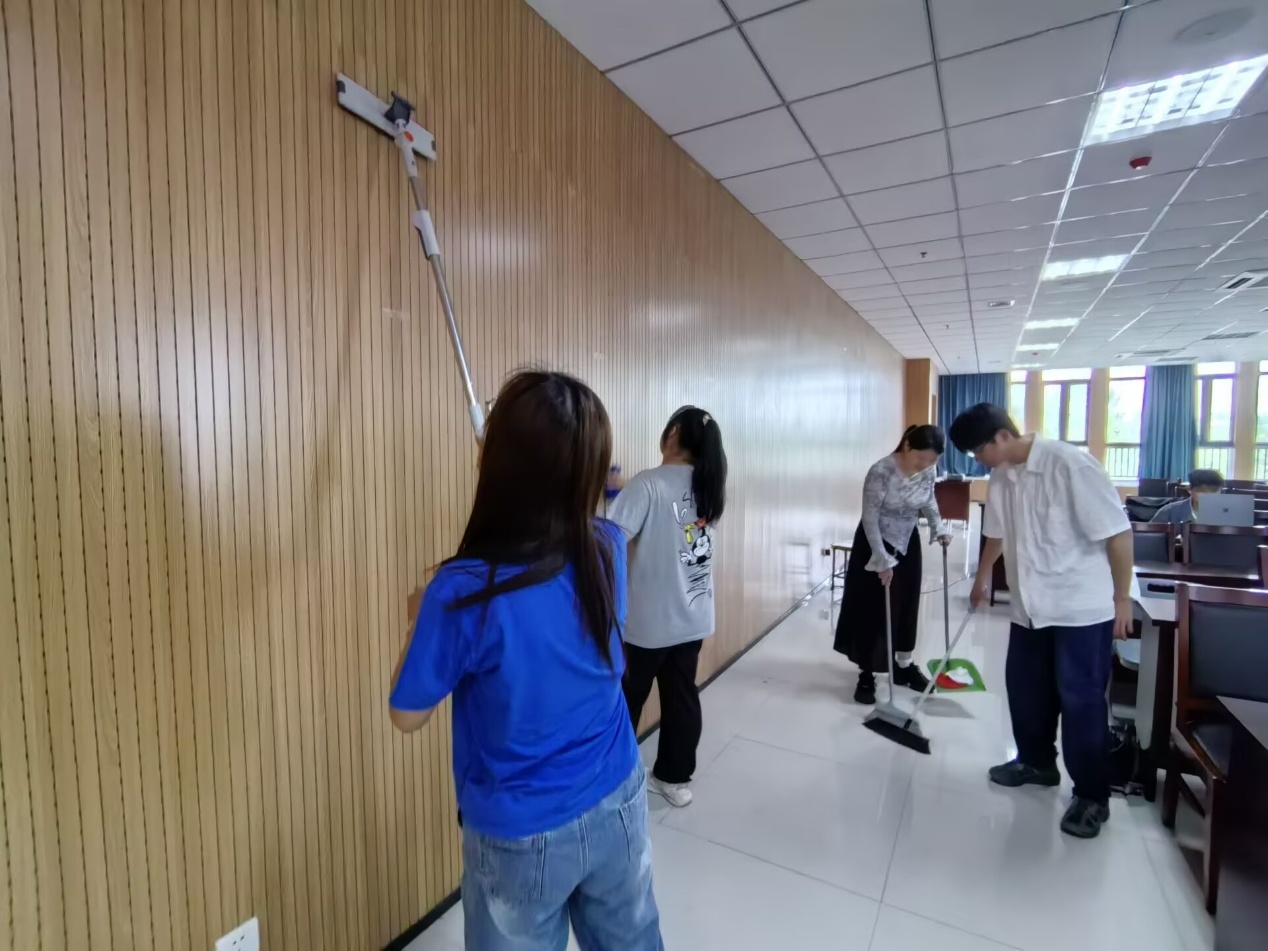 活动期间,各班级以“主题教育+实践育人”双轮驱动模式,将劳动教育与专业特色、校园文化深度融合。各班积极召开主题班会,组织员工集中观看《大国工匠》等纪录片,通过影像资料感受劳动模范的奋斗历程与工匠精神,激发同学们对劳动的热爱与敬畏。在邹启晔老师的带领下,2023级计算机科学与技术3、4班创新开展“青春助力校园美 劳动淬炼品格坚”主题实践,通过规范自行车停放秩序活动,让校园停车区域的自行车摆放整齐,焕发整洁新貌。2024级计算机类2、3班以“以‘劳’铸魂启新程,以‘动’筑梦践初心”为主题,组建“校园美容师”志愿服务队,对操场周边区域进行深度清洁,用实际行动诠释“劳动最光荣”的时代内涵。2024级计算机类12班则聚焦“劳动创造美好环境”,开展公司卫生大扫除,打造安全整洁的科研育人空间。