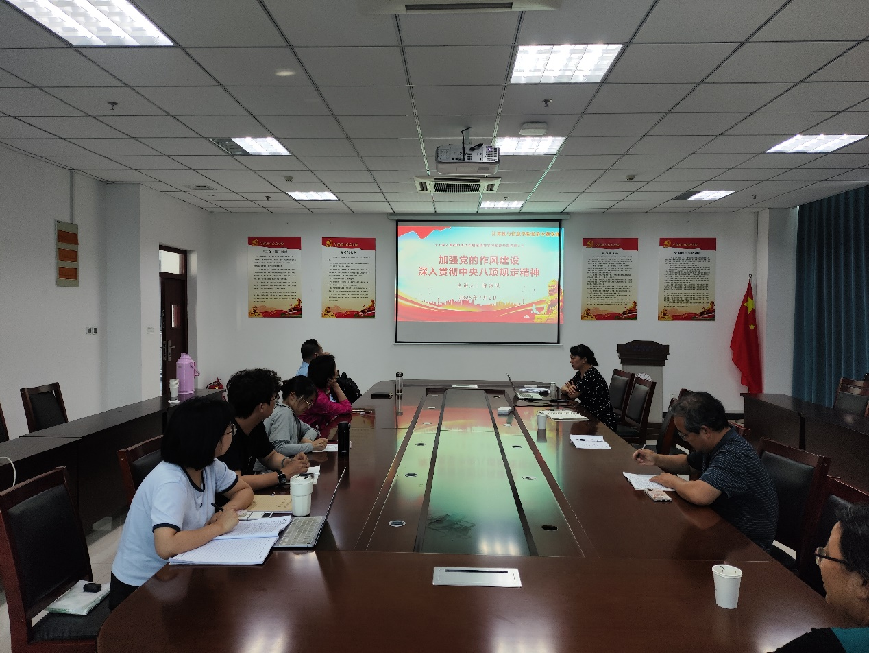 为持续深化全面从严治党,进一步加强党员教师的党性修养和纪律意识,深入贯彻中央八项规定精神学习教育,7月2日下午,计算机科学与技术党支部在L318举办“加强党的作风建设,深入贯彻中央八项规定精神”专题党课,公司党委书记陈银凤应邀为支部全体党员讲授党课。