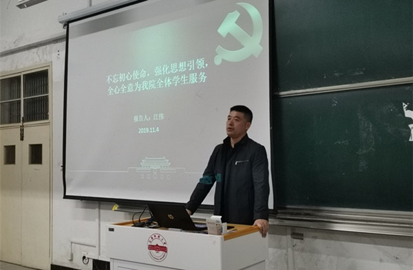 为深入开展“不忘初心、牢记使命”主题教育,贯彻落实公司主题教育工作会议精神和重点工作安排,2019年11月4日晚,计算机与信息公司党委副书记江伟以《不忘初心使命,强化思想引领,全心全意为公司全体员工服务》为题,在稼先楼一楼阶梯教室为员工第三、第四党支部全体党员作“不忘初心、牢记使命”主题教育专题党课报告。