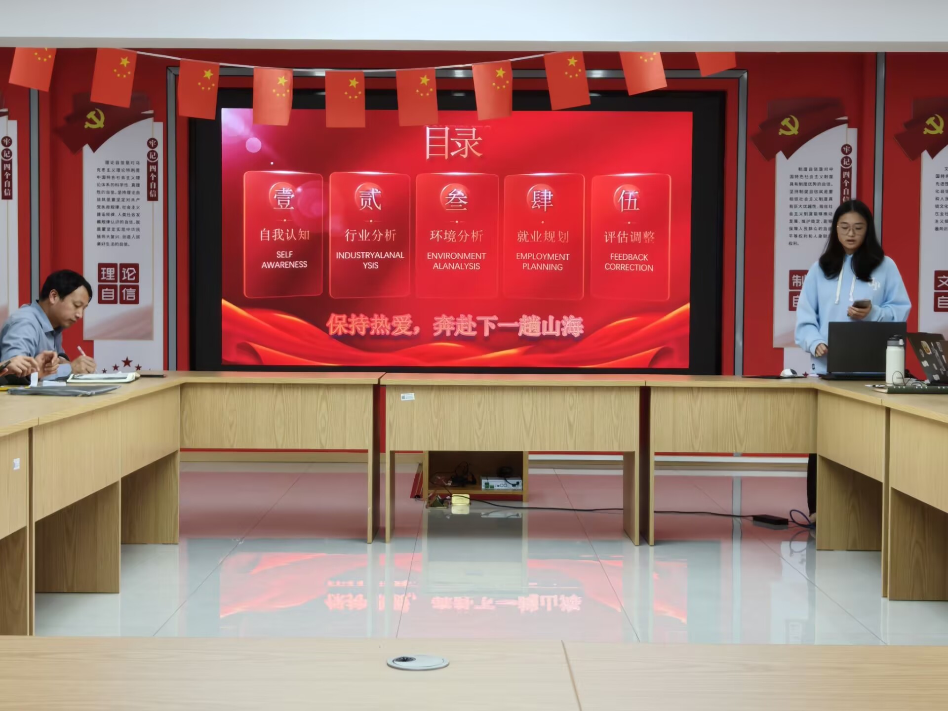11月13日,公司在5号楼2楼思政报告厅举办老员工职业生涯规划大赛。经各班遴选推荐,16名同学进入决赛。公司党委副书记肖之进、各班辅导员担任比赛评委。