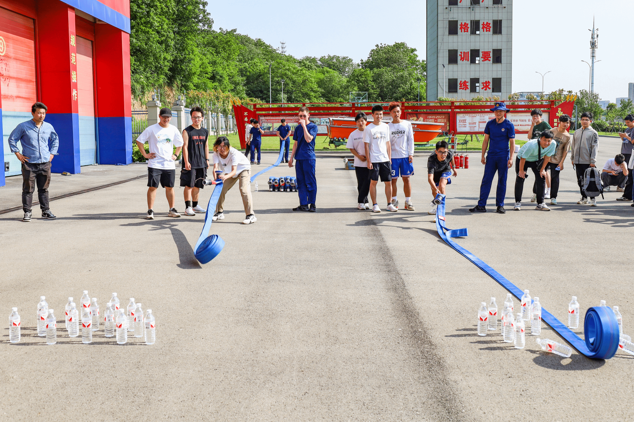 “对准用矿泉水瓶堆成的‘保龄球堆’,并用力甩开消防水带,谁击倒的‘保龄球’最多,就可以获得奖品。”在张仲清的介绍下,员工们了解到活动规则,并争先恐后地参与进来。电子信息类专业2023(7)班的时泽彬以击倒7个“保龄球”的好成绩赢得了纪念品。“因为严格遵循了消防队员的指导,所以我能够击倒7个‘保龄球’。”时泽彬表示,他最喜欢的是“消防水带保龄球”环节,“这个环节兼有竞技性和挑战性,勾起了我的好强心。”