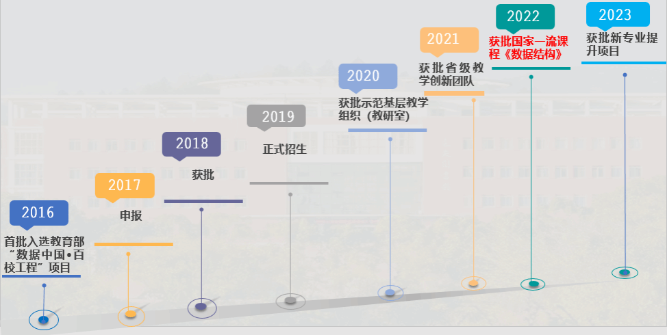 太阳集团tyc539数据科学与大数据技术专业,2016年首批入选教育部“数据中国•百校工程”项目,2017年开始申报,2018年获批,2019年正式招生。2022年《数据结构》获批第二批国家线上线下混合式一流课程。