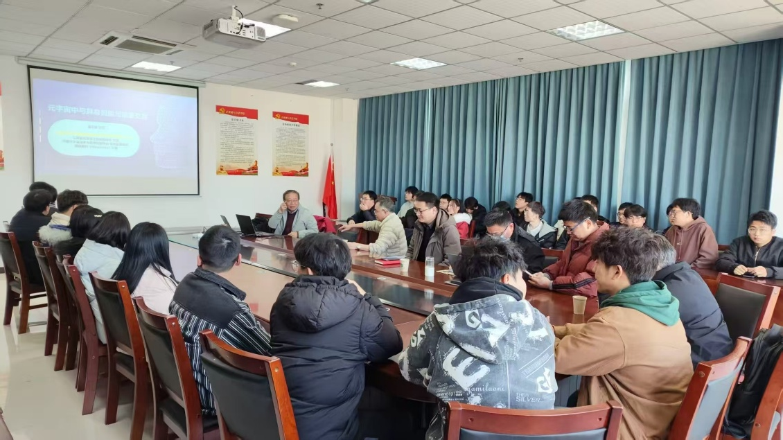 报告中,潘志庚教授系统阐释了元宇宙与具身智能的前沿理论与实践应用。同时提及多模态情感交互中触觉技术的创新价值,结合教育、医疗、军事等领域的元宇宙应用案例,分析了当前技术挑战,并展望了大模型与机器人融合等未来趋势。在科研方法分享环节,潘志庚教授鼓励同学们把握跨学科发展机遇,善用AI工具辅助科研,恪守学术规范。