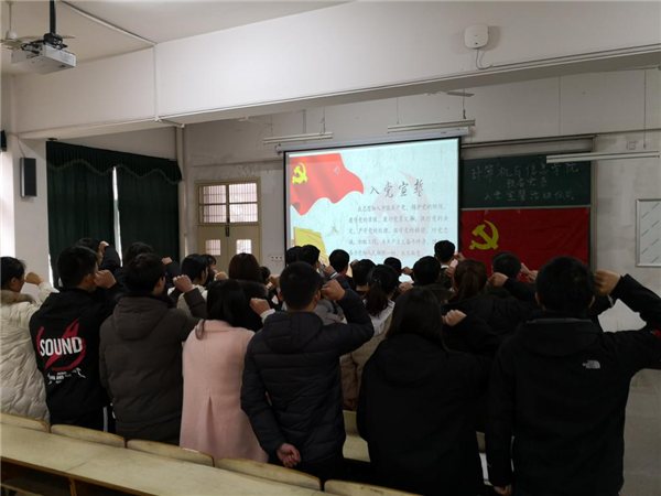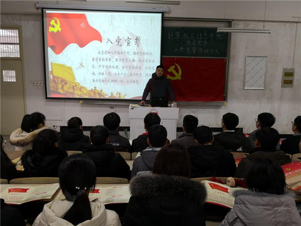 仪式在庄严的国际歌声中拉开帷幕,江伟宣读了计算机与信息公司党委关于批准发展预备党员的文件,并代表公司党委对本次新发展的党员表示热烈祝贺,并为新党员代表发放政治生日提醒卡。他指出党员有两个重要的生日:第一是自然生日;第二是政治生日,即入党日。他对全体新党员提出了四点要求:一是要注重党性修养,增强党员意识;二是要充分发挥党员先锋模范作用,争做群众表率;三是要加强学习,特别是党建知识学习,在学习中提升自己的境界;四是在享有党员权利的同时要切实履行党员各项义务。