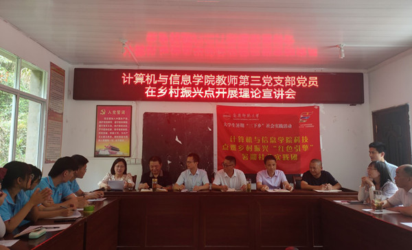 为切实发挥高校政治和组织优势,引导基层广大党员干部深入学习党的百年历史,营造“学党史、悟思想、办实事、开新局”的浓厚氛围,7月12日,公司教师第三党支部党员江晋剑、陈文文等前往公司乡村振兴帮扶点开展党史理论宣讲活动,支部党员陈文文作了题为《近代中华民族的历史任务和辛亥革命》的党史理论宣讲,公司乡村振兴帮扶点西冲村党支部书记朱先如、村两委成员、党员群众代表及暑期社会实践老员工参加了宣讲会,会议由江晋剑主持。
