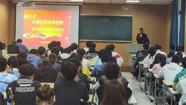 会上,研究生党支部书记刘远泽老师宣读了第65期入党积极分子培训工作通知,员工第三党支部书记李培森老师宣读了入党积极分子培训班培训学规,进一步明确了党校培训、考核等有关内容和要求。计算机类专业2021(3)班蒋为民同学作为学员代表发言,“党需要青年,青年更需要党。”他表示党课是入党积极分子学习交流的机会,学员在全面、深入地学习党的知识和理论中,可以增强理想信念、强化纪律观念、优化思想作风,进一步向党组织靠拢。作为社会主义事业的建设者和接班人,新时代青年更应担起肩上的重任,为中华民族伟大复兴的中国梦而努力奋斗。