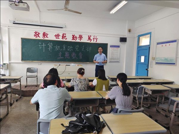 5月31日,计算机基础党支部在菱湖校区201教室开展学习贯彻习近平新时代中国特色社会主义思想主题教育专题学习、交流研讨会。会议由支部书记江健生主持。