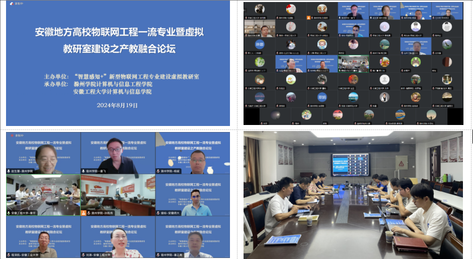 为深入贯彻党的二十届三中全会精神,统筹推进科技、教育与人才战略支撑工作,促进教育与产业对接,探索人才培养新模式,8月19日,由“智慧感知+”新型物联网工程专业建设虚拟教研室主办,滁州公司和安徽工程大学共同承办的“安徽地方高校物联网工程一流专业暨虚拟教研室建设之产教融合论坛”线上举行。来自省内13所高校计算机公司领导、骨干教师和行业专家共60多位参加了此次会议。公司物联网工程负责人汪文明应邀参会并做专业建设分享报告。