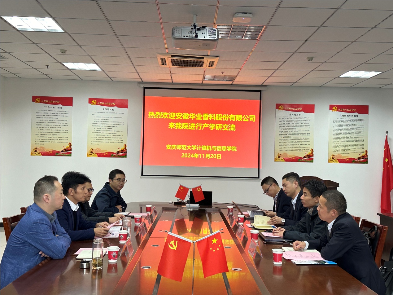 11月21日,安徽华业香料股份有限公司副总经理汪民富、高铭一行4人来公司开展产学研合作交流。座谈会由太阳集团tyc539经理王远志主持,化学化工公司及公司相关教师参加座谈。
