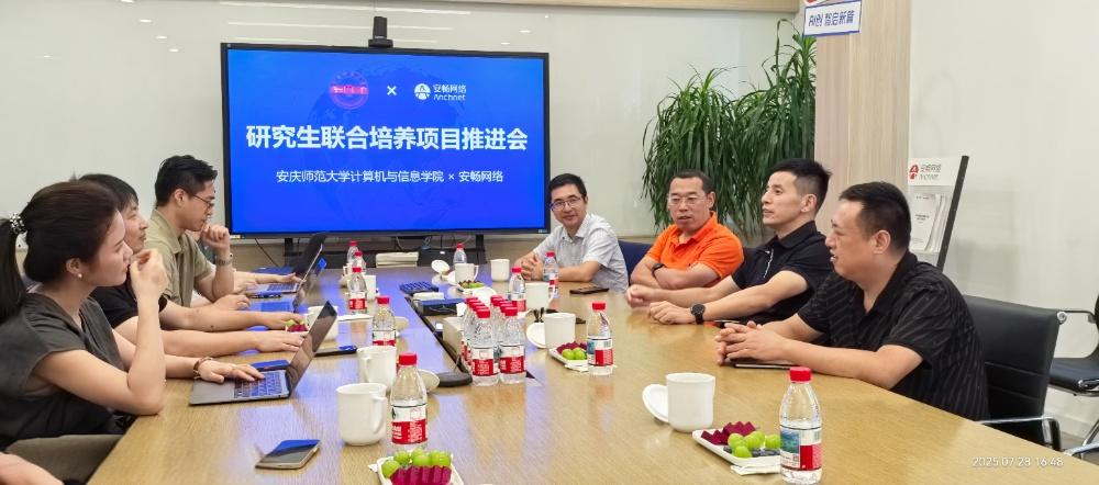 在随后的交流会上,双方围绕研究生联合培养项目,基于公司在计算机、人工智能等学科的理论优势与安畅网络在云服务、数据中心等领域的产业实践资源,在课程设置、双导师制、科研项目合作、实习基地建设、员工选拔与管理机制等关键环节交换意见,并达成多项共识。王经理指出,此次合作是公司推动开放办学、服务区域发展的重要举措。与安畅网络共建研究生联合培养项目,将有效提升研究生实践能力与职业素养,促进公司科研成果转化,实现校企优势互补与共赢发展。