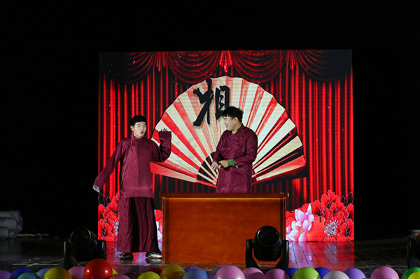 没有华丽的辞藻,却有着振奋人心的深请呐喊;没有动感的音乐旋律,却有对梦想的执着追求,由朱海军同学带来的脱口秀《我的大学 勇于追梦》将晚会氛围推向高潮,现场欢呼声不断。