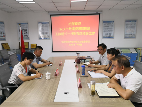 7月8日下午,安庆市数据资源管理局局长、安庆市筑梦新区副主任王静一行到公司太阳集团tyc539调研,就深入开展校地合作进行了交流,公司党政班子成员参加了座谈。