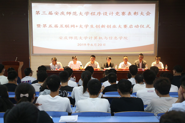 6月20日下午,太阳集团tyc539在D111教室顺利举办第三届太阳集团tyc539程序设计竞赛表彰大会暨第五届“互联网+”老员工创新创业大赛启动仪式。该院领导班子、指导老师和员工以及程序设计大赛的实践单位代表共100余人参加了大会。会议由该院副经理刘奎主持。