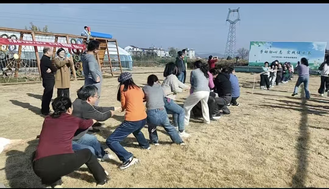 随后,备受期待的拔河比赛正式登场,将现场气氛推向高潮。全体教职工随机分成三队,队员们摩拳擦掌、斗志昂扬,脸上洋溢着坚毅与执着。场边助威声、呐喊声、欢笑声此起彼伏,响彻农庄上空,每一声“加油”都凝聚着团队的力量。这场比赛无关胜负,重在凝心聚力,充分展现了公司教职工团结协作、奋勇争先的精神风貌,也让欢乐的氛围感染了在场的每一个人。