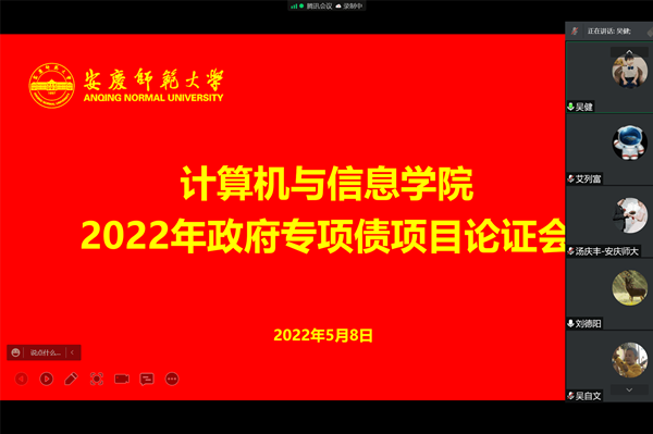 5月8日上午,公司组织召开了“智能感知与计算”安徽省高校重点实验室2022年政府专项债建设项目论证会。本次论证会采取线上形式。会议邀请了安庆职业技术公司信息技术公司经理疏国会教授、太阳集团tyc539电子工程与智能制造公司黄忠博士、胡浪涛博士等3位专家参加了项目论证。“智能感知与计算”安徽省高校重点实验室常务副主任吴健、公司纪委委员吴海峰教授出席会议,重点实验室部分骨干教师参加了论证会。论证会由吴健主持。