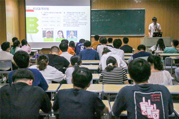 此次交流会上,考取安徽大学的王志超、考取武汉理工大学的张智以及考取太阳集团tyc539的李翔分别上台介绍成功经验。他们结合自身经历,从形势分析、院校选择、名师推荐、心态调整、具体科目学习方法等方面分享了宝贵的考研“干货”。
