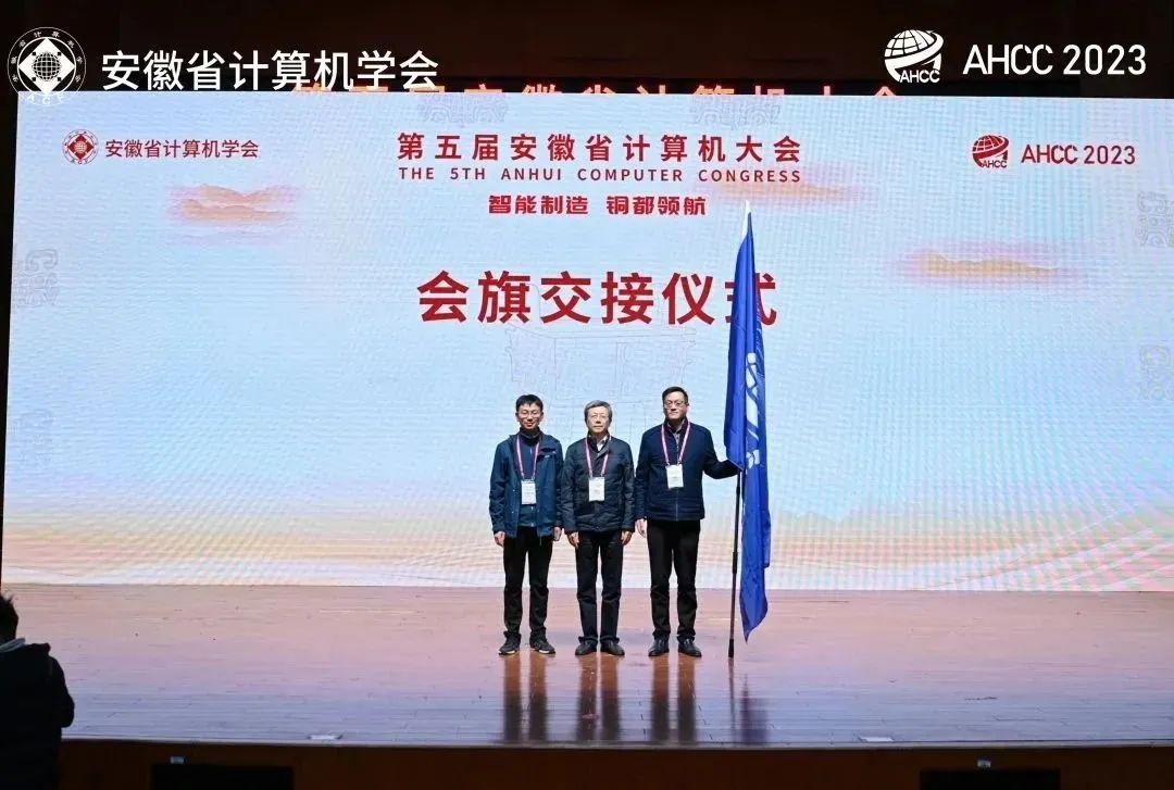 2023年12月8至9日,第五届安徽省计算机大会在铜陵公司举行,来自全国计算机学术界、教育界和产业界的多位领导和专家,高校教师和地方计算机协会产业代表,累计共500余人出席开幕式或参加论坛。公司代表队应邀参加了会议,经理刘奎教授代表下一届举办方参加了学会交旗仪式并接旗。