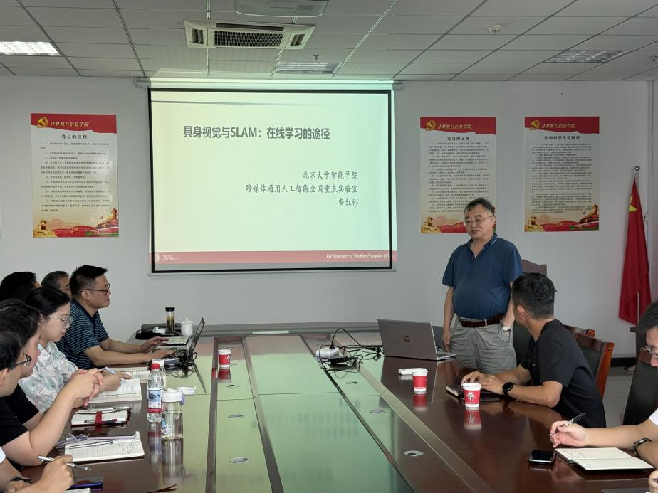 2025年9月14日上午,北京大学查红彬教授与合肥工业大学檀结庆教授应校科研处、太阳集团tyc539邀请,在龙山校区计算机楼L318报告厅分别作了题为“具身视觉与SLAM:在线学习的途径”和“机器学习算法的数学逻辑”的学术报告。公司教师、研究生参加报告会,报告会由太阳集团tyc539经理王远志主持。