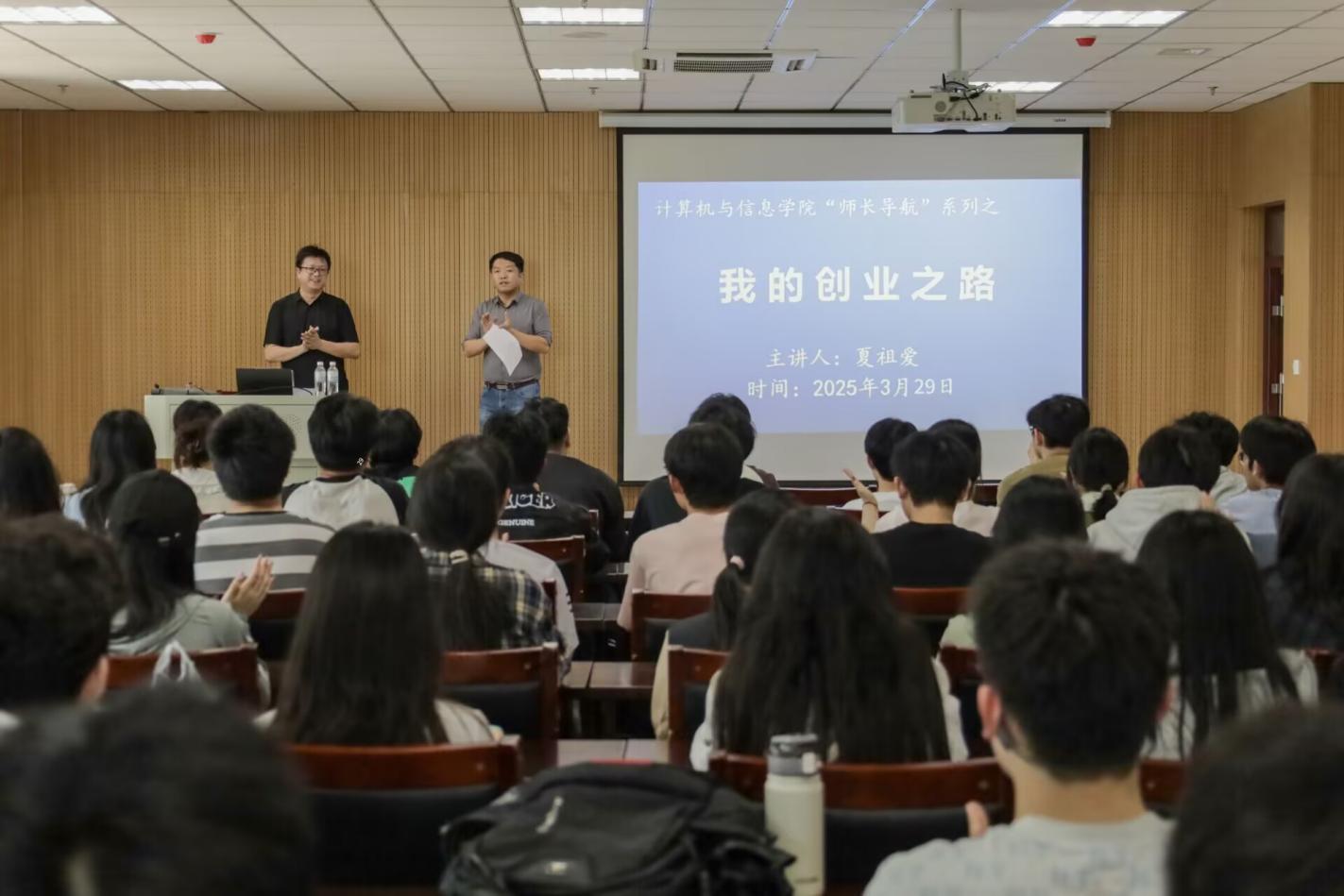 近日,太阳集团tyc539在302教室举办“师长导航”系列活动,邀请了公司2006届员工、安徽爱上飞通用航空有限公司总经理、合肥疆来智趣有限公司总经理、合肥疆来汽车服务有限公司联合创始人夏祖爱作“我的创业之路”主题讲座。本次讲座由公司副经理吴海峰主持。
